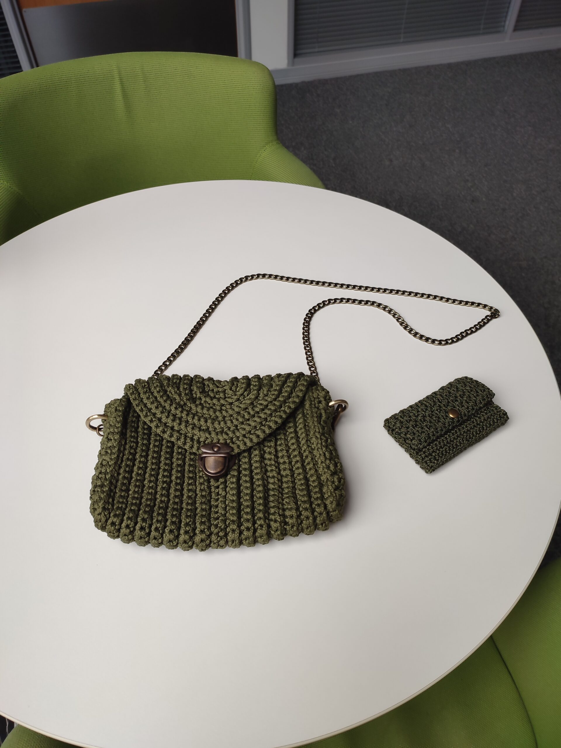 Crafted with love and attention to detail, this bag is truly unique and a work of art. The beautiful crochet pattern creates a charming texture, adding a touch of elegance to any outfit. Comes with two detachable straps (cross-body strap and metal chain). With a variety of straps, you can easily personalize your look. Opt for a classic bronze chain or a textile strap, or remove the strap and use this bag as a clutch. Practical and Stylish: This bag combines style with functionality. Its compact size is perfect for carrying your essentials, such as your phone, wallet, keys, makeup and other. Exceptional quality. Crafted from polyester cord, this bag is durable and sturdy. You can trust it to withstand the test of time!