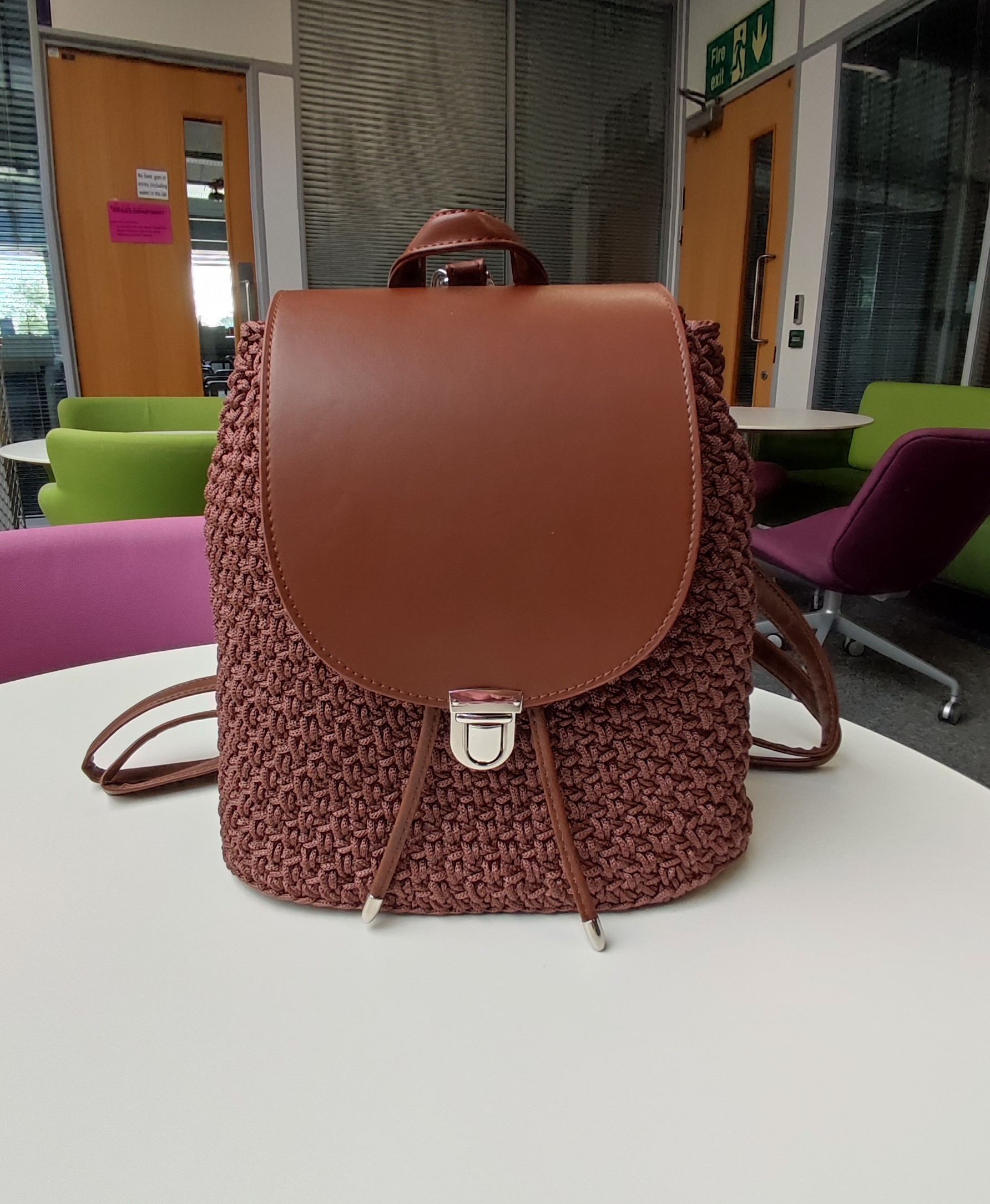 Women’s Backpack in Chocolate Brown with Leather furniture. Crafted with love and attention to detail, this backpack is a beautiful practical accessory for you or a great gift for your loved ones. Practical and Stylish: with lots of space for your essentials, combines fashion with functionality. Handmade.
